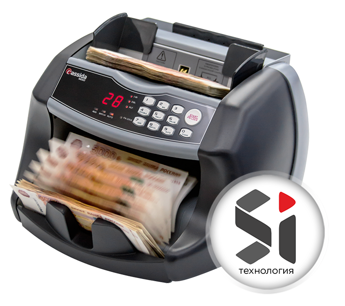 Cassida 6650 I/IR распознает ошибки пересчета: сдвоенность, целостность и цепочка банкнот. Ошибки пересчета выводятся на дисплей с дополнительной звуковой индикацией. Скорость счета достигает 1500 купюр в минуту.